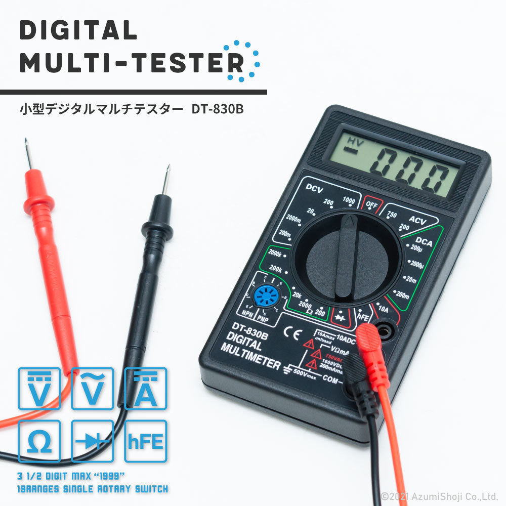 小型デジタルマルチテスター 日本語説明書付き 電流測定器 コンパクト 電池 電流 一家に一台 電流 電圧 抵抗 計測DT-830B デジタルテスター