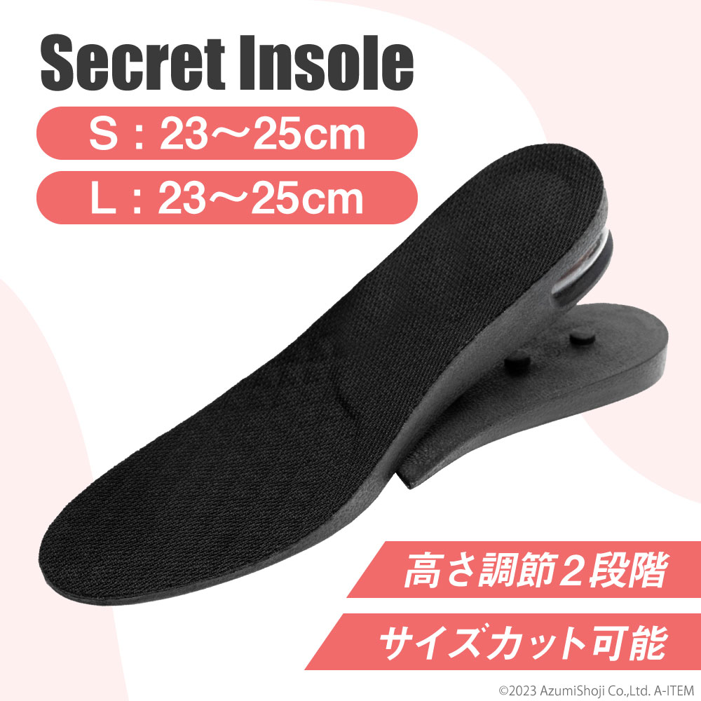 シークレットインソール 靴用中敷き クッション シューズ ブーツ スニーカー用 底上げ 身長 衝撃吸収 疲労軽減 サイズ調節可能 カット可能 高さ調節