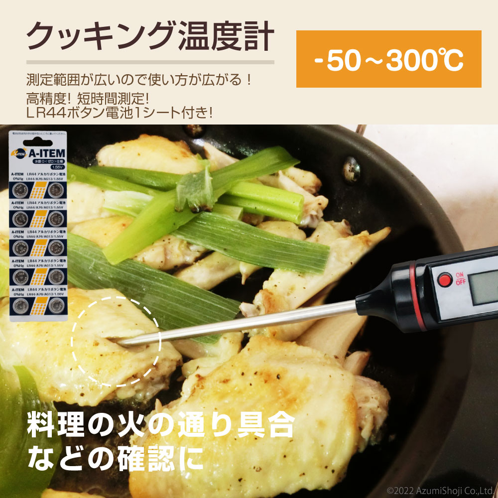 温度計 LR44 1シートセット 料理用 食品 安い 料理 調理 油 肉 デジタルサーモメーター キッチン 水温 お風呂 熱帯魚 水槽 天ぷら 低温調理 クッキング