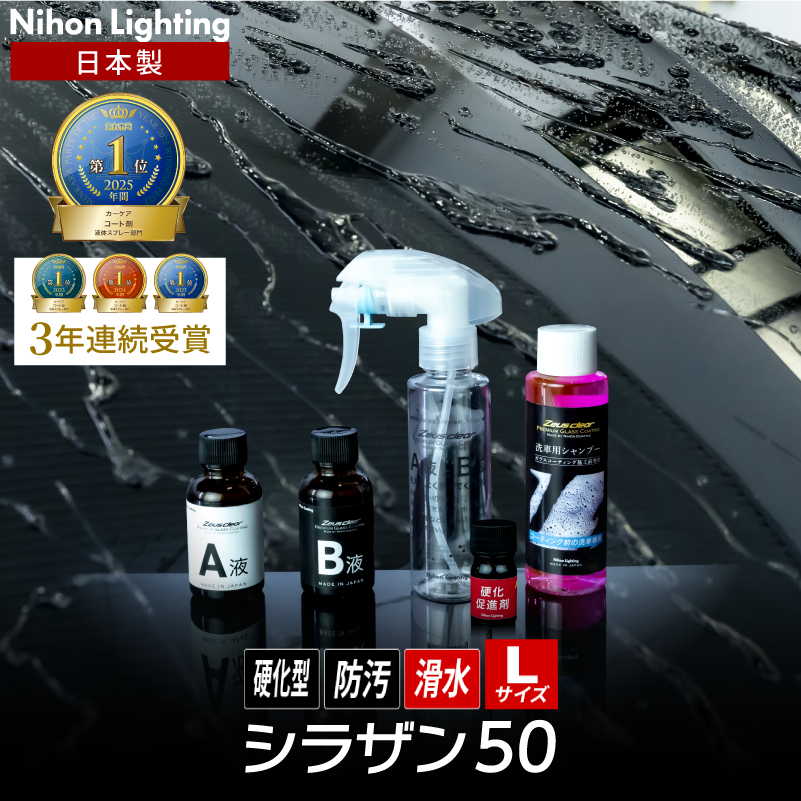 【スプレー式ガラスコーティング】ゼウスクリア シラザン50 [Lサイズ] 60ml 耐久3年以上 超撥水 超滑水 ボディ ガラス ホイール マフラーなどに