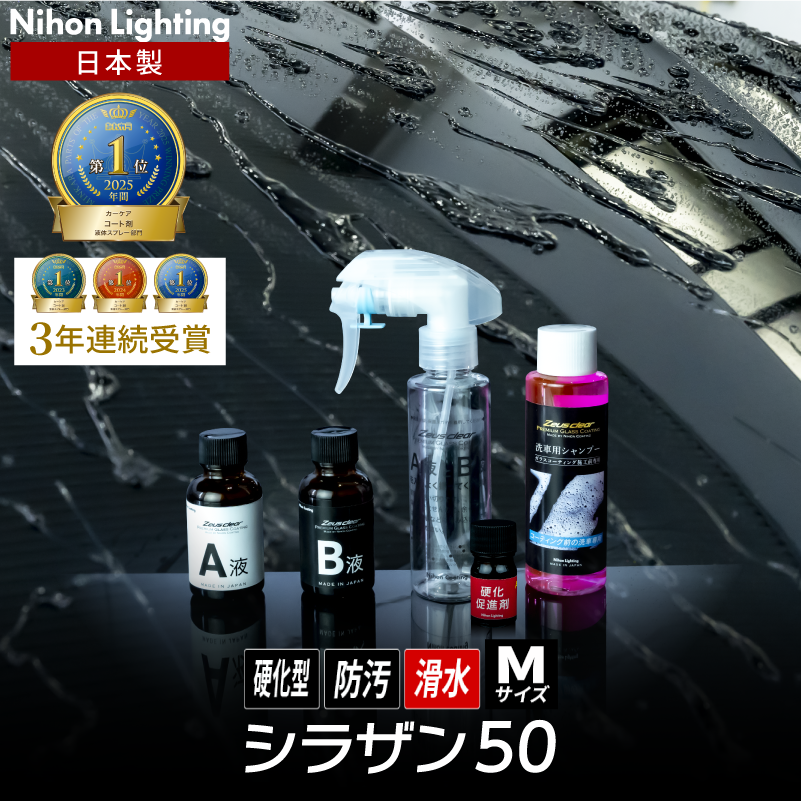 【スプレー式ガラスコーティング】ゼウスクリア シラザン50 [Mサイズ] 50ml 耐久3年以上 超撥水 超滑水 ボディ ガラス ホイール マフラーなどに