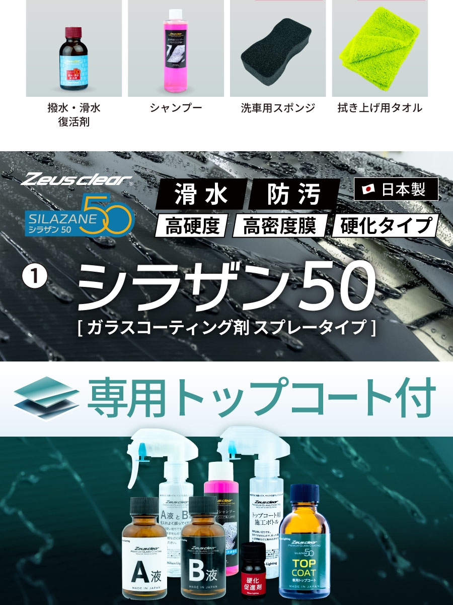 10%OFFでお得 【パーフェクトセット トップコート付】ゼウスクリア シラザン50 トップコート付 下地処理からアフターケアまで揃った豪華セット Mサイズ