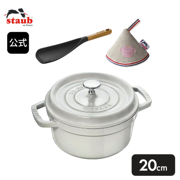 【公式ショップ限定】ストウブ ピコ・ココット ラウンド 20cm カンパーニュ& マルチスプーン & ノブミトン ソルベローズ 3点セット