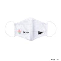 ラグビー日本代表ジャージのデザインモチーフをマスクにしました。ベース素材の柄は、日本伝統の和柄からインスピレーションを受けた、「力・ならわし・縁起」を意味する吉祥文様は勝利を祈願する想いが込められています。ラグビー日本代表ブレイブブロッサムの象徴である「桜」とチームスローガン「ONE TEAM」がプリントで施されています。
