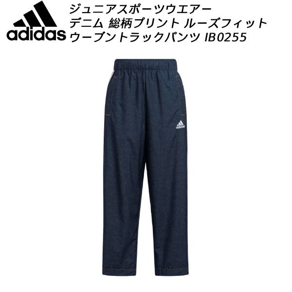 アディダス adidas ジュニア ウインドブレーカー パンツ デニム 総柄プリント ルーズフィット ウーブントラックパンツ IB0255